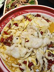 镇店王牌必点!鱼片薄嫩无刺入口滑嫩,金汤酸鲜醇厚,融合土坛酸菜、丘达辣椒特色风味,还点缀菊花提鲜颜值口感双绝,配菜土豆粉、花菜吸满汤汁,拌饭巨下饭🍚