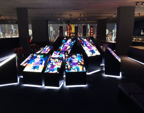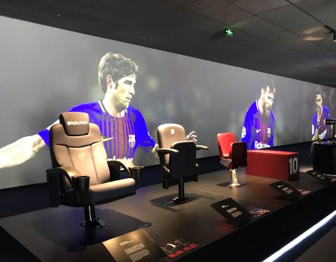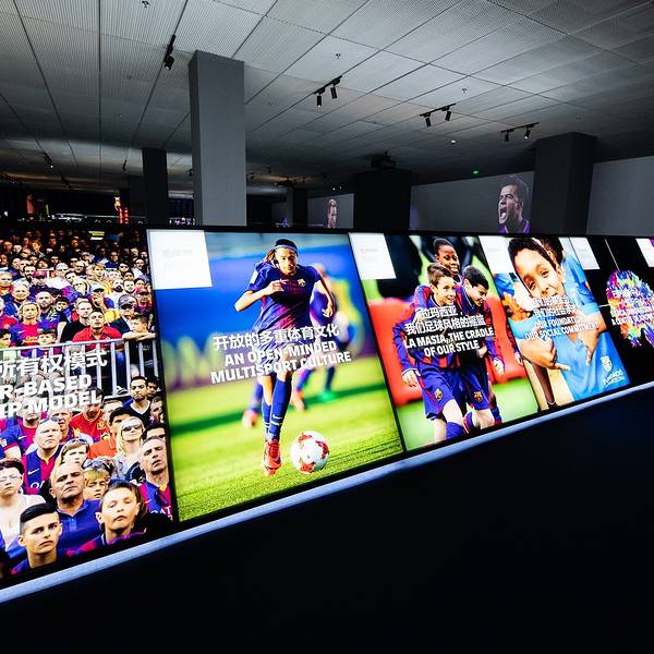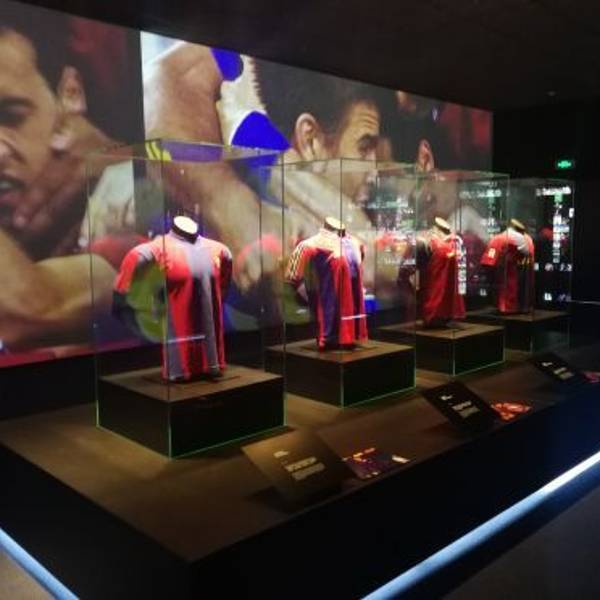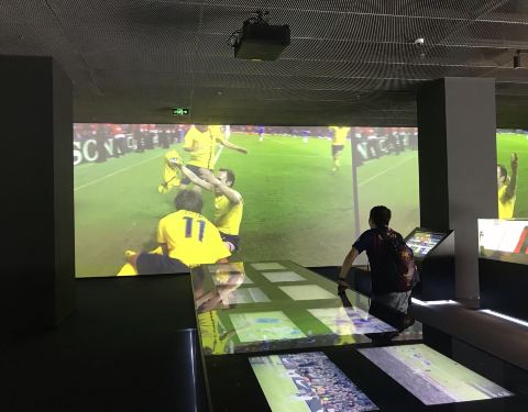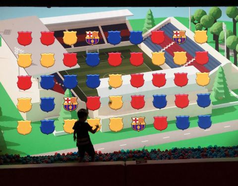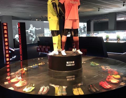 闲话少说,开始参观。展馆一共2层,还有个中国足球历史展区,满新颖的强。二楼(实际是4楼,展馆在新城三楼)整个场都是巴萨的,各种声光电的前沿科技,加上各类明星的,俱乐部的珍品,眼界大开!特别一提是,展馆还有互动区,不管是带球,射门,涂鸦,,,这个孩子们是最喜欢的了! 下次一定带小朋友来感受一下。