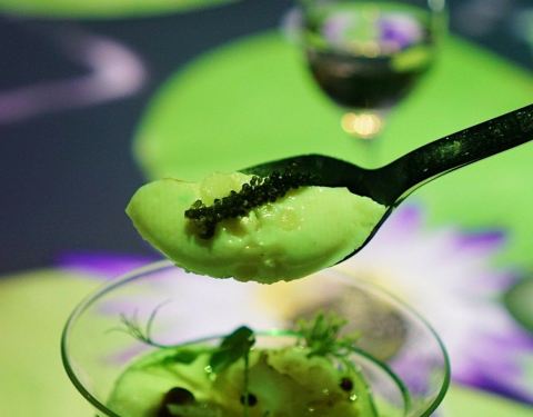 「未知」Unknown 猪软骨 鹌鹑蛋 茉莉花 可食用的部分隐身藏匿于坠落的陨石之间,细心掂量找寻几个暗黑色小陨石。 一颗猪软骨外层的面衣炸的微香脆。再是一颗一口咬下是鹌鹑蛋的流黄内心,最后一颗暗色泛着微微...