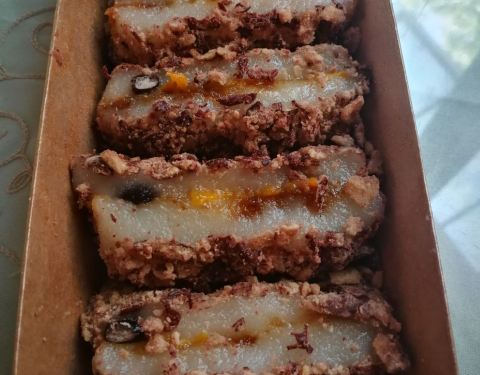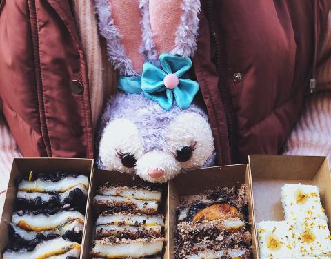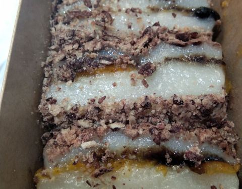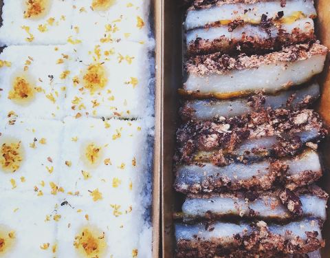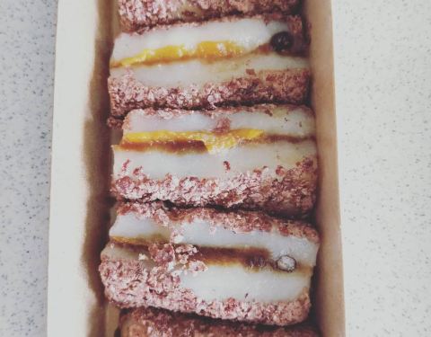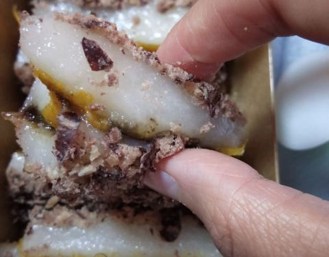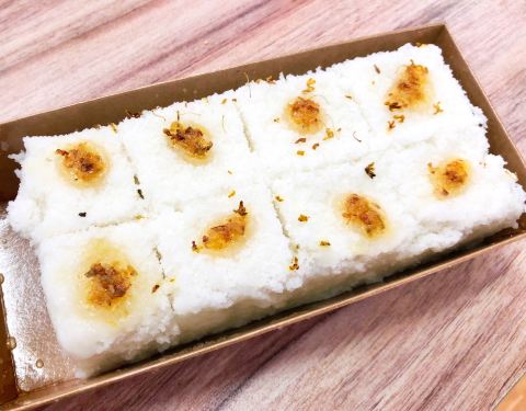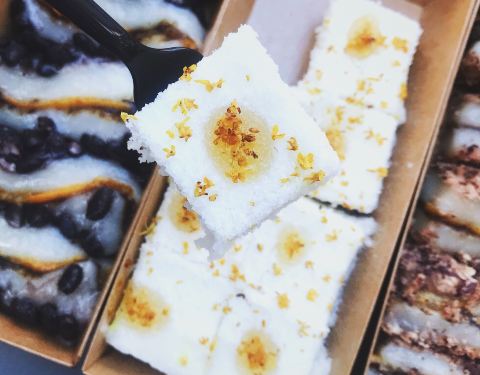 - 桂花榴蓮芝士米糕,是鬆軟的口感。而且都是現包現做的,打包帶回家還是熱的。可以拉絲