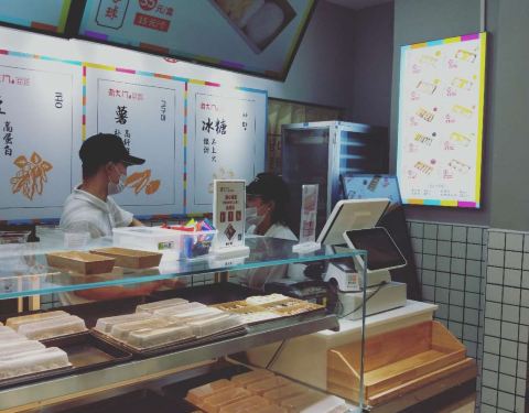 这里的糕点是在透明的玻璃房内制作,食客可以欣赏到烹饪的全过程。为了追求正宗的口感,都是现做现卖,保证品质。招牌的红豆切糕散发着浓郁的香味,口感软糯。