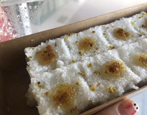 “摆盘”很特别 桂花糕是用大米做的 拿到手的时候还是呼呼烫的呢 应该是刚刚做出来的 闻着很香 ...