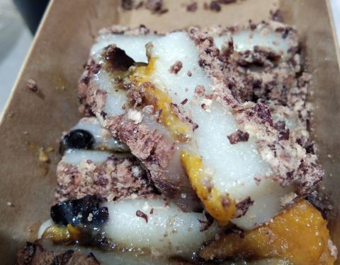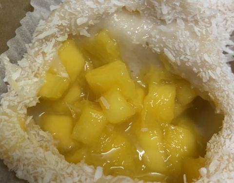 之前老媽說想試試他家的米糕,工作日去的,所以沒啥人。而且都是現包現做的,打包帶回家還是熱的。芒果球,裡面料很足,一口咬下去料都溢出來的感覺。紅豆打糕,很有韌性。可以拉絲~桂花榴蓮芝士米糕,是鬆軟的口感。蠻喜歡的!