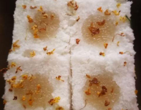 - “摆盘”很特别 桂花糕是用大米做的 拿到手的时候还是呼呼烫的呢 应该是刚刚做出来的 闻着很香 ...