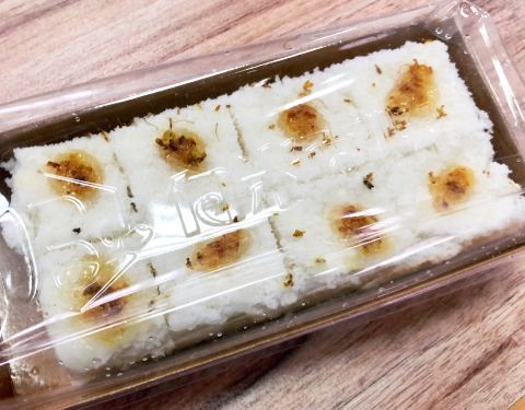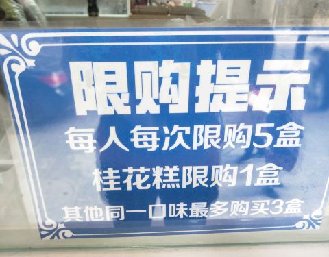 米糕有好几种口味,咨询了一下服务员,买了主打的桂花,再选了个黑米。糕都是事先已装好的,牛皮纸盒,拎了就走,所以虽然排了些人,但速度倒是很快。糕一到手就乘热吃了二块,糕切成薄薄的,一盒有六块左右,很软糯,微微甜的口感,挺好吃的。家里的长辈喜欢吃糯米的东西,今天回去应该会受表扬啦。