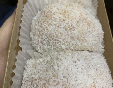 第一次尝试这种米糕类的。糯米团子里面是有水果的,芒果,榴莲,草莓。比起糯米团子,我更喜欢他们家的桂花糕,桂花糕忘记拍都吃完了……桂花糕不是很黏的那种,很香又不甜。大推荐呀。