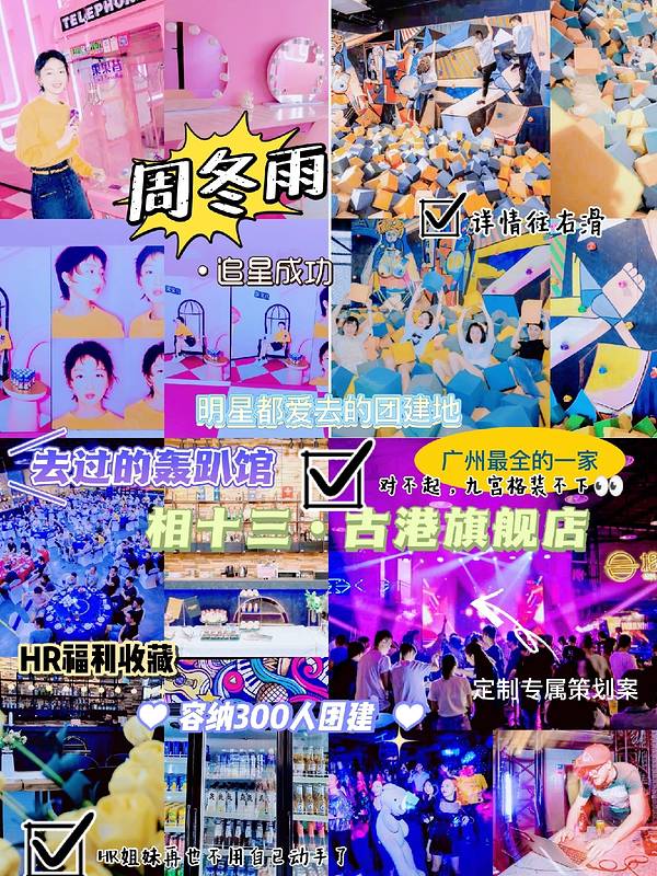 🧚♀️ ———— 店名🎢 | 相十三古港旗舰店 — 🚁营业时间| 24小时 ——— 地址🎡|:海珠区黄埔古港创墟11-6(SK健身馆对面) ——————— 🥕地铁:⑧号线 /万胜围/B口出 —— 🦒开车:直接导航店铺附近超大停车场 —— 🥑环境: 1400平米超大面积,装修偏美式复古,随便拍都很好看!!设备也很多,蹦床、篮球🏀、射箭、电竞、KTV包厢、麻将、switch游戏机🎮、剧本杀、狼人杀……各种娱乐游戏!分分钟玩到不想走!!! — — 🥑心动点: . ✨明星化妆间🪞:打卡周冬雨同款 ✨室内超大蹦床区:攀爬可玩,释放压力 ✨开会必备:超大会议桌,大屏可开300多人会议等,也配置小型私密会议间 ✨社恐线上玩:五排电竞区和Switch游玩区,VR体验 ✨互动组队区: 超大专属KTV包厢, 射箭pk,街球篮球区运动,剧本杀桌游,娃娃机,商场版K歌… ✨专门调酒区: 时尚蹦迪靓仔专属; ✨德州扑克区:不用去澳门就可以玩,喜欢不会的还有麻将机,可以打通宵 ✨休息区:榻榻米床和被子👍 ✨ …… 🧚♀️值得一提的是,这里提供活动策划及布置、主持、摄影、餐饮等配套服务。非常适合企业过来团建!可以容纳50-300人哦!听说还服务过360集团、富力等大牌公司哦👍 . 👀真实感受团建再也不是HR的噩梦 ——— 🍠服务: 前期与他们客服沟通,有预约邀请实地参观,工作人员会耐心的讲解引导试玩每一个项目操作 . 中间他们负责人,帮忙制定方案,跟进策划,全程整个店都特别配合服务超赞 💓 . 最后整个活动流程下来,给我的感觉就是,省事,橙子已经操办了大大小小不下20个公司活动,其实只有HR自已明白 ,每次团建里面的心酸,这么多家下来对比后,不得不说这家店,👍 • 🧚♀️他们有承接:轰趴聚会、企业团建、求婚表白、生日派对、企业年会、等多类活动场地需求 ———————— 🌟 总体评价五颗星⭐️⭐️⭐️⭐️⭐️ 🎡其他分店地址:赤岗/客村;五山/燕岭;天河客运站;同和/京溪;深圳 🌵 广州探店|广州轰趴馆|广州团建|百人团建|HR的福利|广州首选 🧚♀️快艾特你的小姐妹们去打卡吧 ✨我是橙子小姐,记得多多guanzhu⭐️