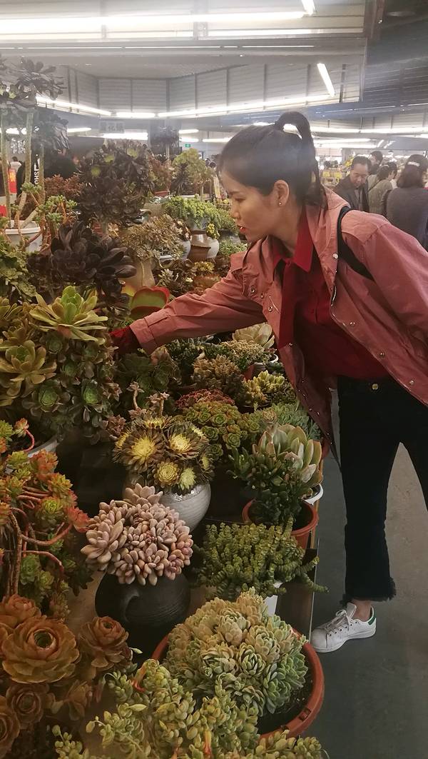 因为滇池实在没什么意思,我们滴滴前往斗南花市,斗南花市是亚洲最大的花卉市场,途中师傅给我们推荐了一个网红景点"教场中路",看蓝花楹,据说很美。本来我们计划上午大略逛下花市,然后下午就去教场中路,结果一入花市深似海,逛了五六个小时,累到腿都抬不动了,还只逛了部分市场。 斗南花市第一层主要是卖鲜花、种子、绿植;第二层主要卖干花、多肉。人很多,我们先草草看了下鲜花区,大把玫瑰大概都是开价10元一束,太便宜了吧。因为特别喜欢多肉,所以打算先去看多肉,一到二楼,一眼望去都是琳琅满目的多肉,造型特别好看,价格又特别便宜,我们俩开口说话必先情不自禁附带个"哇"字,相互对视一眼就觉得很好笑。看了好几个摊位,每家都好看,真是眼花缭乱,不知从何选择,越看越兴奋。走到一个小哥的摊位前,超级大老桩多肉只要10块钱!真是不能忍了,确认老板可以帮忙发快递之后,选了七八颗很大的多肉,才100多块,超值!连一向不太热衷于多肉的吉吉同学,也忍不住买了两颗,我俩就像刘姥姥进大观园,什么都想瞧瞧,看什么都新鲜。这位同学这行都吃了好多冰淇淋了。这么贵的还真不多回来种了一阳台看完多肉区,又去逛干花区,一家店的老板娘超级热情,我们一看干花也挺好看的,质量也不错,加之漂亮的老板娘又热情推销,不买都不行了。在店内看完香皂看香包,还是干花最吸引人,就是怎么搭配得好看是个问题,在店内来来回回穿梭,吉宝同学还隔空联系了几位发烧友,帮忙代购了几束干花。在店内折腾到一点多,还没有吃午饭,和老板商量先去吃个饭再来继续采购,老板爽快同意了,也不收我们的定金。 拖着疲惫的双腿,先去隔壁3号馆的"桥香园"吃云南米线,店内也是人非常多,好不容易坐到了一张桌子,随便点了两个进士米线,大小碗碟一堆,味道还行,匆匆忙忙吃了饭,又继续回花市奋战。午饭时路过顺便问了下外面卖花的老板,玫瑰花一下降价到5元一大把,还有推着车卖花的老婆婆,说玫瑰,蔷薇什么的10元3把,只是品相略差,听到这些,已经呆了几个钟头的我们还是很不淡定,只想快点看完干花下来看鲜花。逛鲜花区的人很多,鲜花白菜价,玫瑰大概13元40枝,蔷薇、黄玫瑰5元一大把,买两把还送一大把不知名鲜花,真是超级便宜,第一次感觉鲜花比白菜还便宜!说好了不买鲜花,不知不觉就买了这么多,还要搭飞机😓,不过机场遇到的美女说机场买一束蔷薇88元,我们才5元买的,瞬间觉得累点也值了。墨兰,25元,也被我不辞辛苦,不远千里拎回来了到下午三点多,真的累得不行了,双腿灌铅也差不多了, 直接打的回酒店休息在酒店休息时正好看到电视台播放综艺"我家那小子",记得前天的微博热搜有武大靖买花,一束鲜花540元,下边刚好有个昆明网友评论,你这540元,到昆明可以买一后备箱,到了斗南花市就深刻体会昆明人民的优越感了,买一后备箱真是so easy!晚餐实在没有力气跑出去觅食了,就随便在楼下的一个自助火锅解决了。