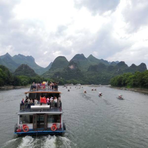 船也挺不错的,很干净,二楼三楼甲板开放,可以观景,拍照,沿途有解说,提供茶水和午餐盒饭,分量和...挺好的,有专车上门接送,如果当天住阳朔不回桂林,可以预约其他时间从阳朔接回桂林。船也挺不错的,很干净,二楼三楼甲板开放,可以观景,拍照,沿途有解说,提供茶水和午餐盒饭,分量和菜品也还不错。