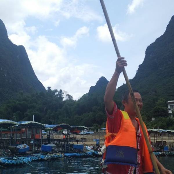 漓江的景色很美,船上的自费摄影师技术...对导游时间的安排和态度还有专业性不是很满意。我和我女儿(13岁)在游漓江的船票座位是分开在船走廊两边的,我也换不了座位...,导游说话的思路很混乱,名字都念不出...