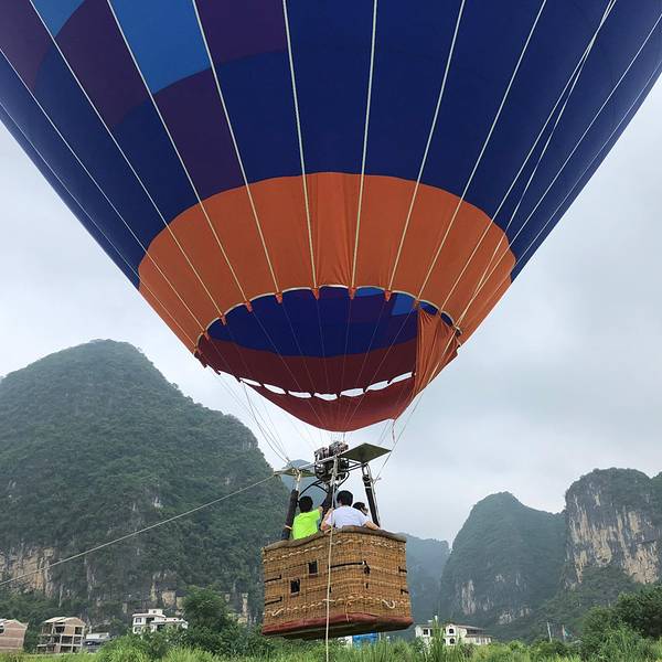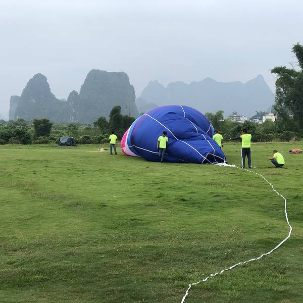 到了阳朔之后居然莫名其妙的去体验了一回热气球,体验过后的感想就是,浪费时间,虽然热气球难得体验,但是这个热气球一点意思都没有,高度不是很高,体验也就几分钟的时间,等倒是等了很久,在大厅休息的时候,体验滑翔伞的人说蛮好玩的,可是当天的滑翔伞都被预约满了,有点遗憾。
