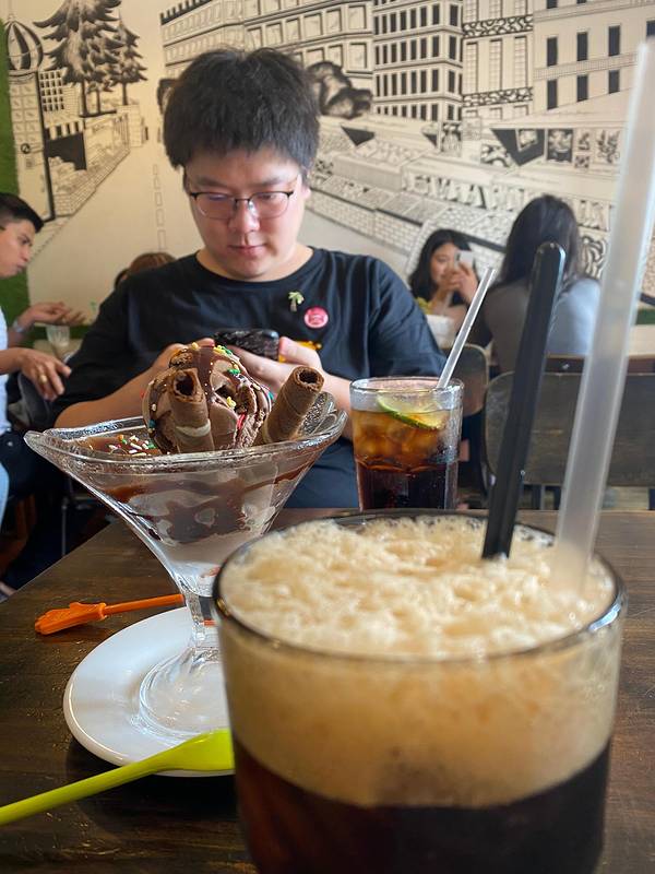 咖啡公寓其实就是一栋公寓楼,因为里面开了很多家咖啡店而得名。临街的一侧是阳台,因为每一家店都把招牌挂在阳台外,所以在外面看起来形成了一道非常美丽的景色。公寓里有一部电梯,但是门口有人收费,费用不高,可以备些零钱去体验。我们并没有确定要去哪一家,就去爬楼梯了。这里有很多网红店,可以一家一家打卡。我们大概转了一圈,发现每家店都很干净,装修的很漂亮。就随便选了一家进去,点一杯冰咖啡,吹吹空调,一坐就坐到了下午。突然发现打卡景点也没那么重要了,享受过程才是最重要的。