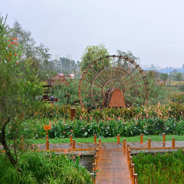公园里水质清澈,各类花卉和水生植物竞相开放,风车、雕塑、栈道等人文景观让游客们时时驻足观赏。
