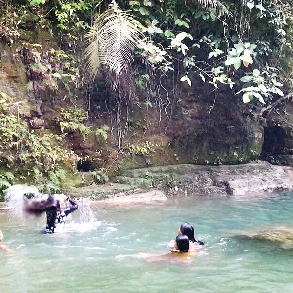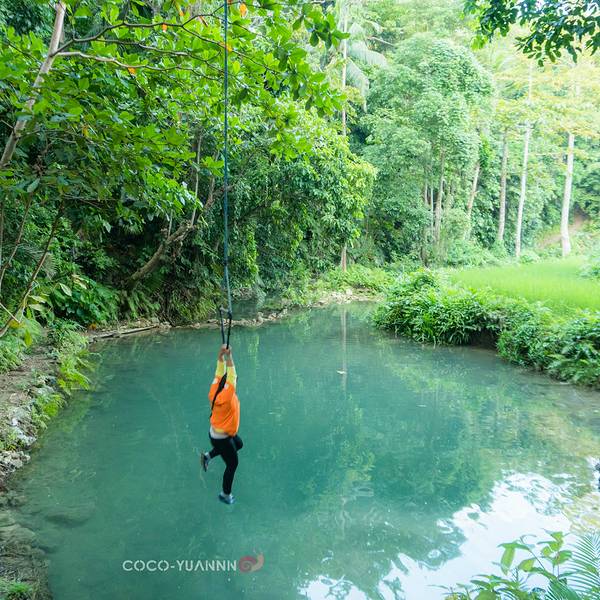 #点评召集令#锡基霍尔的乡村气息感觉比薄荷岛更浓郁些, 道路很干净,环境清幽。 在入住的酒店租了机车打算环岛游。 一辆车大概300P。骑着机车我们先是去了撒拉东海滩跳海。 从果冻海滩出来时已经下午4点多了, 剩下的时间只够去一个景点, 在路旁看到一个标志牌上赫然写着:Locong Falls 于是我们跟着指示牌开了进去。到了这个地方,门口有管理员收费。 门票一人50p,停车20p。 跟着本地人的步伐,前往瀑布。 村里的小孩一窝蜂涌现出来, 跟着我们四个一起来到瀑布。村里的小朋友貌似对我们很好奇,全程跟着我们进去玩。 我们询问向导,里面有多少人, 他说只有我们四个。 看情况,是包场咯~ 后来从他们口中得知,这里一天也就20-30人来游玩~ 一群人陪着我们玩了几个小时, 如果可以,请给点小费~ 他们会用最真挚的笑容,迎接你。走了大概几分钟就能到,工作人员先亲自示范怎玩滕索。 我们后来也跟着玩,甩出去在水面上的感觉很爽。 有点泰山猿人的感觉,哈哈。滕索的附近,是个比较小的池潭。 由于我们来的时间比较晚,游客就只有我们而已。村里的小朋友跟着我们一起下水玩, 也许是因为锡基霍尔靠海的关系, 这里的小孩大人都谙熟水性。 在我们面前玩起花式跳水。临别的时候我们邀请了小孩们一起合照。 我们玩的很开心,他们也玩的开心。 这也使得我们对这个地方的好感度增加些许。