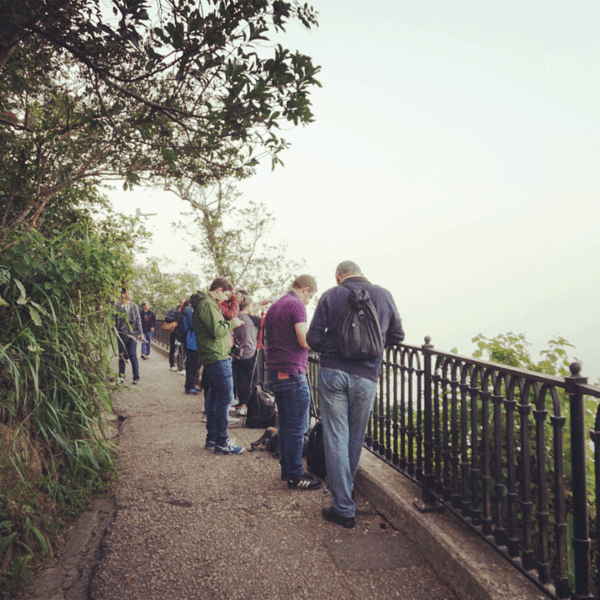 #点评召集令#听说摩天台并不是最佳的拍摄香港夜景的地方。 于是查看资料,发现有个人少、视野好、拍照绝佳,而且免费的好去处——卢吉道观景台。 从凌霄阁出来后右拐靠边有条道路,指示牌上写着:卢吉道 步行到观景台大约需要10几分钟。大概8-900米左右。沿着山边的小道一路往前走,一边是山体,一边是栏杆。 偶尔还能透过树体稍微瞥见到香港的城市景色。 空气中弥漫着负氧离子的味道。清幽的小道上偶尔会遇见下行的行人。一直往前走,知道看到大部队人群伫立,说明这就是目的地了。 看来别人比我们更早就在这里等候拍摄香港夜景。1月底的香港日落时间是18:00左右。 我们17:30就到这, 可以看着香港由白天到黑夜的转变过程。 最适合的拍摄时间是日落后半小时左右 今天有雾,可见度明显降低了许多。都说香港夜景是世界三大夜景之一 。 其中香港的维多利亚港夜景又被称为三大夜景之最。 而欣赏香港夜景最佳的地方,非太平山顶莫属。 今日一见,确实如此!! 虽然有雾,但夜景还是很美的!! 果然,美好的事物是值得等待的。我们从早一直等待到夜幕降临。把香港的白天黑夜一起收入囊中。【交通】 →→→搭乘山顶缆车上山,在凌霄阁出门右转有个路口进入,步行约8-900米即到 【门票】 免费在山顶可以看到这么一幅陆风自然步道的地图。 如果想徒步的旅游不防把这个拍下来,下次可以使用。