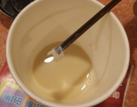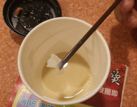在核桃味的豆浆里发现块纸,还好小朋友没喝下去,这样的食品安全质量让人反胃,不会再去光顾