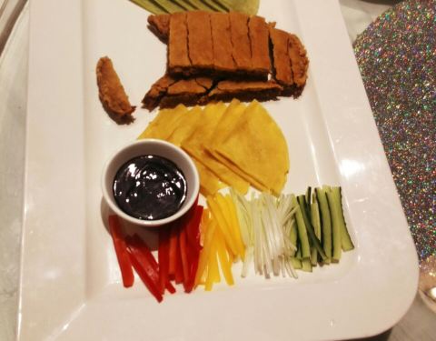从黄檀硐回到市区,已经天黑,在入住的酒店附近就餐,这是当地称得上最好的餐饮酒店了。因为是十几个人一桌的,算是在宴会厅用餐的,只有三大桌,菜色也比较考究,味道不错,就是上菜速度实在太慢了。已经上好的冷菜有莲藕做的,简单很爽口。还有一盘冷菜莲藕做的,简单却很爽口。鳗鱼干,肉很绵软,乐清这的鳗鱼干很好吃,以及来乐清一定会吃的海味河鲜之大闸蟹,看色泽就知道很不错。
