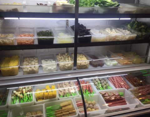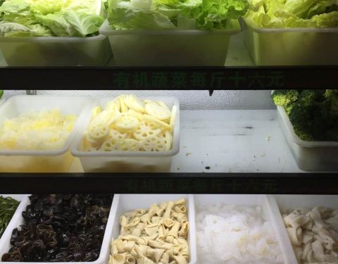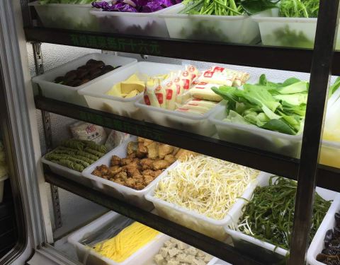 ...,该店的食材比较新鲜干净,蔬菜蘑菇类每斤16-8元,还有按串卖的肉蛋丸子类,主食有火锅面和烧饼