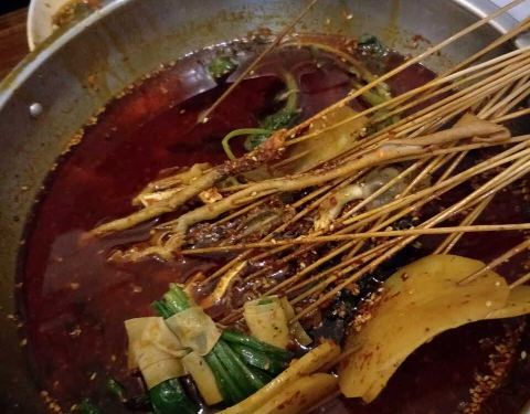 - 串串每支签八毛钱,鸭掌、脆骨、鸡翅尖、牛肉串、鸭胗等等一定要尝尝,啊对了友情提醒微辣也很辣
