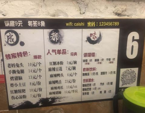 神一般的店!隐藏在不起眼的小巷子里!性价比之王!孜然小土豆巨好吃,外壳脆里面又是面的。串串每支签八毛钱,鸭掌、脆骨、鸡翅尖、牛肉串、鸭胗等等一定要尝尝,啊对了友情提醒微辣也很辣!酒酿汁甜甜的好喝,红糖糍粑和冰粉很解辣,烤脑花也记得尝尝~两个妹子打完九折吃了一百多点,超棒,希望以后有了喜欢的人也能陪我来这种小店哈哈哈