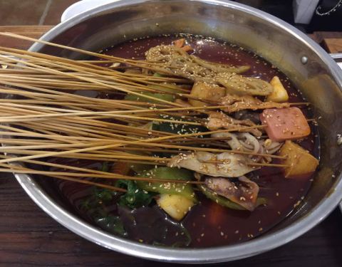 店家来得比较晚,差不多到午饭时间才开店,菜单丰富,就是串串品种有点少了,那样都点一些,油碟不是免费的,土豆,鸭血这些都是非常入味的,糍粑,酥肉也挺受欢迎,辣度可以自由选择,串串价格是荤素一样价格,感觉还是挺实惠的。