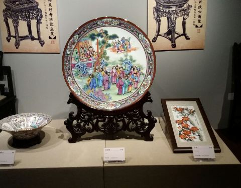 博物馆在文化公园里面,凭有效证件可免费领票。多是清代文物,瓷器和象牙器都很漂亮。广彩开光花卉人物纹冰壶色彩富丽,绘工精美,外腹壁开光图案绘有庭院人物奏乐图。