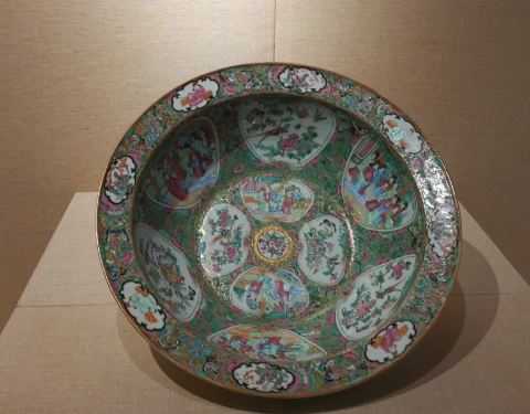 广州十三行博物馆位于文化公园内,离地铁六号线文化公园站很近,交通方便。 我是上次去逛文化公园,一进门就见到了左手边有这家博物馆。在我的印象中,这里是不定期举办一些大型展览,不知道几时变成了博物馆。 这家博物馆是凭身份证领票,免费入内。馆内面积不算大,有两层。 这是一个专题性历史博物馆,以大量珍贵的文献史料和海内外遗存的文物,展示十三行的辉煌历史。一楼是“清代广州十三行历史展”,陈列共分为“开海设关”,“十三行风貌”等六大部份,利用实物、图片、声光影视等,系统地展示了广州十三行辉煌历史以及对外贸易,商人群体,历史事件等。二楼是“王恒、冯杰伉俪捐赠文物专室陈列展”。展出了一千五百多套文物,其中上百件从康熙到现代的广彩瓷器,种类齐全,内容丰富。 我非常喜欢作为出口商品的广彩瓷器,具有典型的中国风格,又融入了西洋特色。