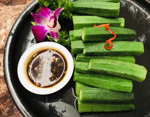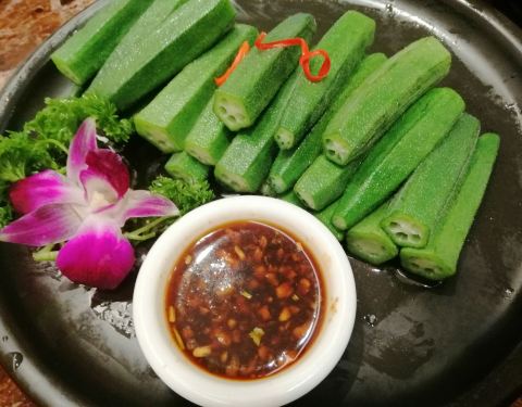 【地址】就在黄厝公交场站旁边。正好带朋友来黄厝海滨这边玩耍,就顺便来这吃饭。 【环境】晚上开得挺晚,我们8点多到的,店里客人还挺多,好多直接坐在庭院里,也比较凉快。里面也挺大,也有小包间。 【白灼秋葵...