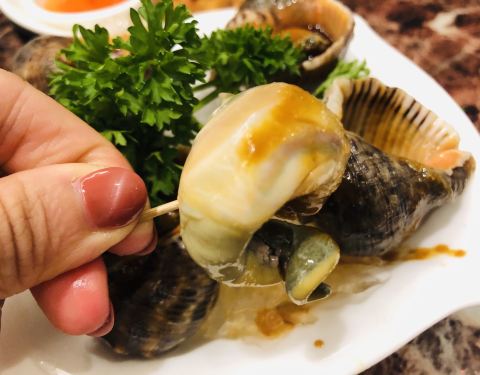 - 香螺水煮过直接冰镇,肉质紧实弹性太爽口。 海蛎紫菜煲直接当汤喝了,哈哈哈… ALL光盘