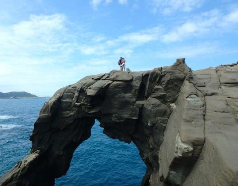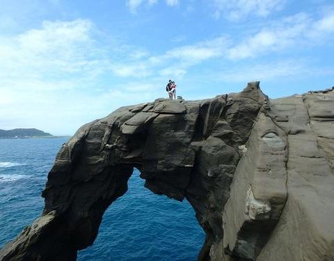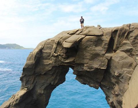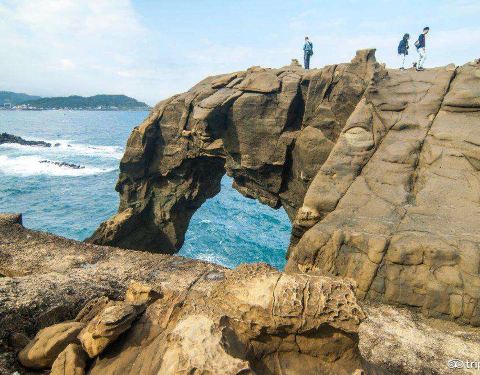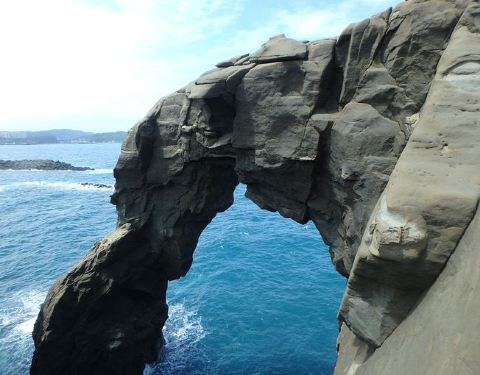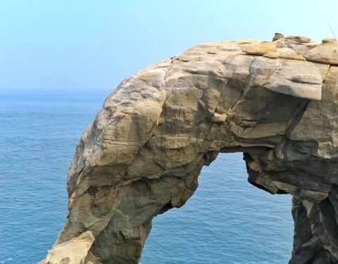 象鼻岩为一巨大的海蚀洞,受到海水侵蚀凹陷而形成。 海蚀洞上弯曲的岩石神似大鼻的长鼻深向海中,故被称为象鼻岩。 可以沿着象鼻岩旁的岩壁攀爬到象鼻岩上方,然后拍出美美的照片。