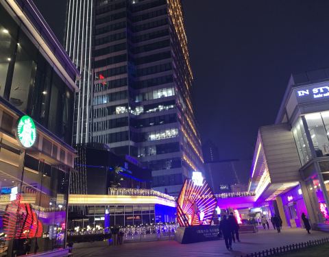 与其说这是一个综合商场,不如说是一个美食广场。它一共分三层,外面两层,地下一层,大多店铺都是口味各异的餐厅,只有少数的饰品店或者买手店。可能是因为在这里办公的人比较多,所以餐厅会多一些吧。