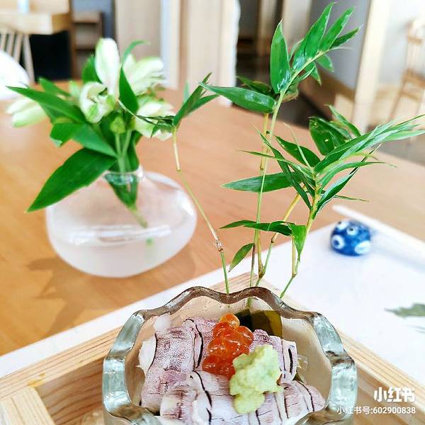 [cp]#随手拍分享厦门美食##日式料理# 食为求本,物为索源。追求食物的本真,保留了食物的原汁原味,以“鲜”动人。很早就被种草了这家日料店,趁今天有时间来打卡了。位于宝龙一城露天天台上,怀石铁板烧是店内主打,但个人偏好日料的鲜度,很爱三文鱼刺身之类的,所以选了单人套餐。 首先,店铺环境优雅别致,陶瓷摆件陈列整洁有序,有大厅主要是方桌及正中的铁板烧餐位,也有独立包厢,店里播放着千与千寻的主题曲,轻盈的歌声给人特别舒服的感觉,环境很棒,适合朋友家庭聚餐,情侣约会。 |前菜^,美的舍不得开吃,透明玻璃的瓶身,里面其实是鲜嫩的鱿鱼,可以蘸搭配的芥末酱吃。辅菜是海带,洋葱丝,酸甜口感。 |山楂饮品^开胃茶,以选用新鲜的山楂浸泡的茶,酸酸甜甜,冰凉爽口,超爱。 搅拌一下再吃,口感更好哦。蛋细腻嫩滑,海鲜肉嫩鲜美。 |北美波士顿活龙虾^选用澳龙,造型摆盘精巧,龙虾肉已经剥离盛放碗中,龙虾肉Q弹,搭配柑橘汁,不过可以先尝尝原味而后再蘸酱,还可以挤点青柠汁。 |绿竹笋沙拉^搭配的是梅奶汁 ,绿竹笋鲜嫩多汁 ,绿竹笋切块过水捞一下,所以保留了竹笋的原味,清甜中带点微微的苦,特别特别的嫩,大爱。 |澳洲和牛薄烧^和牛切成薄片,牛肉片煎至五成熟,带一丁点的红血丝,此时的肉特别嫩滑,口感很棒。还可搭配蘸酱,芥末或淮山片。如果怕太生的朋友可以嘱咐煎熟一些呢。[愉快] |日式茶碗蒸^火候时间控制的刚好,一个字,嫩。有种入口即化的感觉。 |鲍鱼佐原生海藻^原汁原味原生态,口感脆嫩鲜美。 |九宫格御饭^好喜欢这个饭盒,深绿色,吃之前先倒入一些搭配的酱汁,然后开始搅拌,我的是店里的小姐姐帮忙搅拌的,搅拌均匀以后就可以开吃啦。里面食材丰富,有生鱼丁,鱼籽,肉沫,海苔丝,葱沫等,还有点芥末,但搅拌以后一点都不呛。 |餐后甜品^又是颜值满满的,营养搭配,有提子,哈密瓜,两块奶冻,一块红豆味的,一块椰子冻 。提子,哈密瓜水分足,特别甜。奶冻甜度适中,软绵口感,一点不觉得甜腻。 [服务]服务特别棒,服务员小姐姐很细心,看到很暖心的一幕,邻桌小姐姐吃饭呛到,服务员立马上前询问,特别礼貌周到。