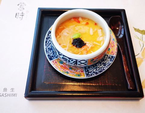 「鱼籽雪蟹茶碗蒸」真的好喜欢这套餐具!吃之前需要将茶碗蒸拌一拌,不然鱼籽有可能会太咸。