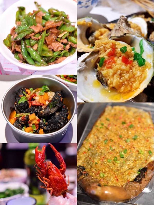 慕名而来……招牌小龙虾,鲜辣味,虾身有点小,冰粉,解辣甜品,冰甜不腻,臭豆腐,原来不臭还鲜炸配蒜汁,烧烤类的,茄子烤过头了,有点苦……