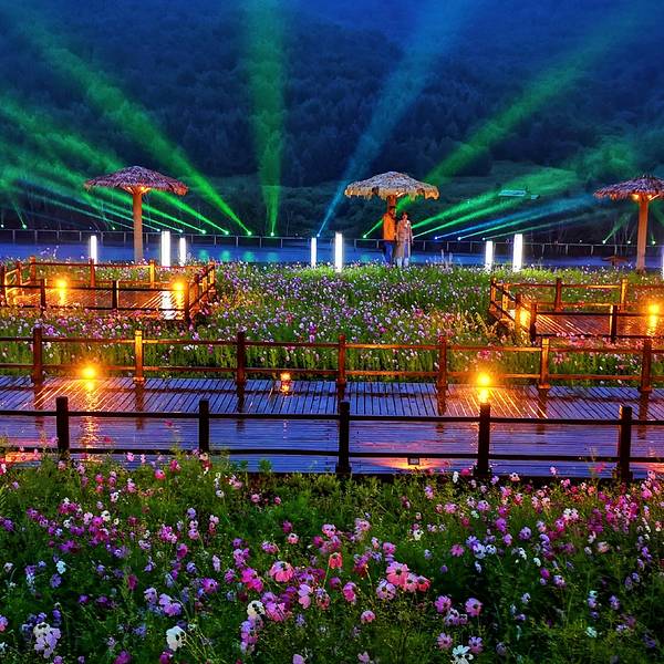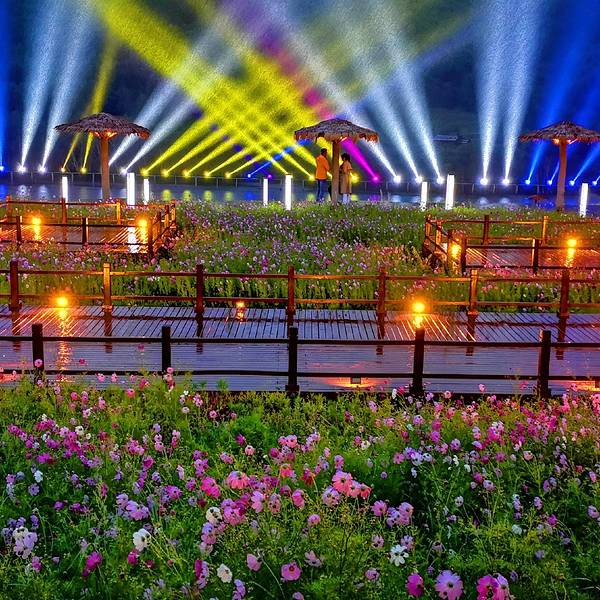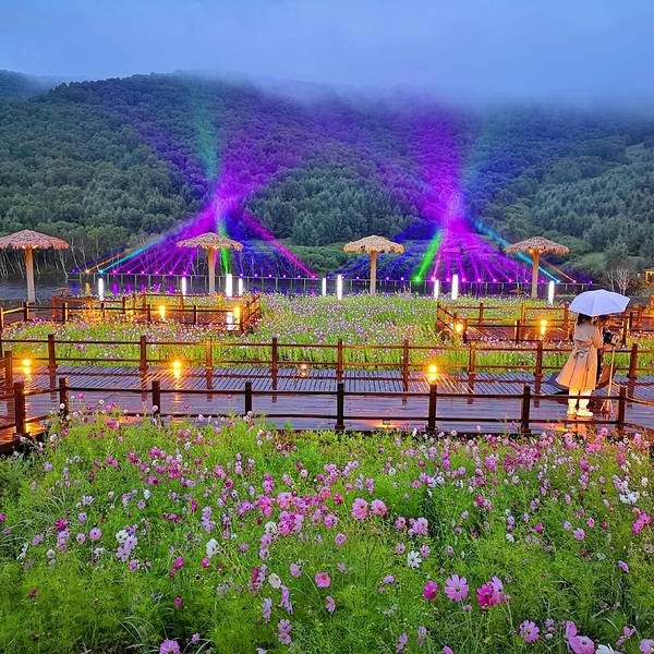 这边是天镜湖的妖娆璀璨,那边是神仙湖的多姿多彩。迷人的夜,雨中的激光秀,一起欣赏这浪漫时刻七彩森林入口的地方,有十二根不同的满族图腾神柱,体现满族自古以来的自然崇拜,图腾柱身由水神、火神、大力神、风神、方位神、电神展现满族先人对自然现象的原始崇拜。十二个柱头由满族的动物崇拜、植物崇拜和...七彩森林入口的地方,有十二根不同的满族图腾神柱,体现满族自古以来的自然崇拜,图腾柱身由水神、火神、大力神、风神、方位神、电神展现满族先人对自然现象的原始崇拜。十二个柱头由满族的动物崇拜、植物崇拜和神灵崇拜组成,包括对海东青、蛇神、鱼神、蛙神、乌鸦神、柳枝神、野猪神、鹿神、狼神、鹿神、熊神和两个神灵。意在体现满族的原始崇拜,同时也警醒人们踏入自然乐土的一刻,要充满对大自然的尊重和敬畏,不要随意破坏自然界的一草一木,才能让自然永保平衡。进景区需要乘坐小火车,我们先去天镜湖赏花看景,神仙湖寻觅多彩森林。正在盛开的格桑花在这绿树碧水间尤其的耀眼,湖边倒映出的花儿更显妩媚。这边是天镜湖的妖娆璀璨,那边是神仙湖的多姿多彩。神仙湖边倒影更加的美,秋色渐浓,绿色的树叶逐渐的变化出不同的颜色,层次分明。站在这里静静的欣赏这期盼已久的秋色,思绪已经飞向树梢,随风舞动......迷人的夜,雨中的激光秀,一起欣赏这浪漫时刻。夜晚的天镜湖,炫彩静谧,幽静的湖水,青翠的山林,盛开的格桑花,美的让人迷醉……天镜湖极光秀是免费观看的哦,要想看到这么绚丽的激光秀,就要住在这里,方便观看。 展开
