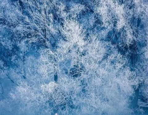 与晨雾、树挂、湖水、构成了一副美丽的画卷,让人误以为掉进了仙境
