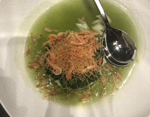 入住的两天里,整个佘山世贸洲际酒店唯一最满意的一家餐厅,毫无疑问一定就是彩丰楼。 无论服务还是口味,彩丰楼都可以算得上是它家餐饮の南波万la~ 餐厅自己煮的茶水rio好喝,香甜系的荔枝玫瑰,养生系的红枣薏米,绝对秒杀所有瓶瓶罐罐的添加剂饮料。 除了鸡头米小豌豆依然和魔都的绝大多数出品一样,完败给了姑苏城的普遍水准之外,其他各款菜品基本上都还是预期值以上的,并且很好地融入了不少本地元素和食材,比如佘山毛芋艿焖咸肉菜饭、松江老鹅拌海蜇、佘山兰花笋、还有缺货没吃到的马桥豆腐煲等等。 而几款有创新的菜品也rio棒棒哒: 颜值平庸的鱼汤鱼柳煮干丝,味道却惊艳级别,比起传统淮扬菜系里的大煮干丝,绝对鲜出新意境。 茉莉花柠汁熏银鳕鱼虽然小贵,比通常做法的熏鱼有着更加酥松的外层和更加细嫩的肉质,调味则是咸鲜香甜全部都刚刚好,所以也算物有所值。 还有平时不怎么起眼的豆苗,在这里变成了价格不菲的五粮玉液嫩豆苗,幸好美味让价格变得合理,毕竟口感完全无渣的绿叶菜真的太难得太费原料惹,何况还有浓郁酒香加持,完全爱到不行!