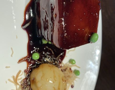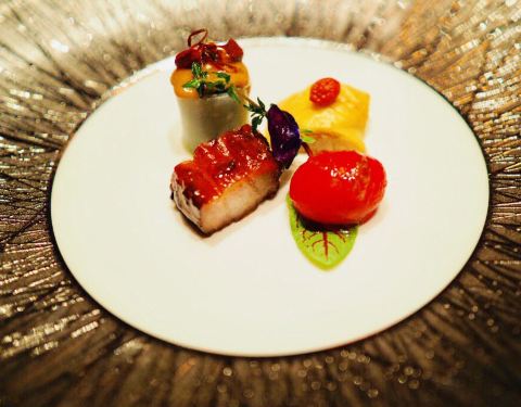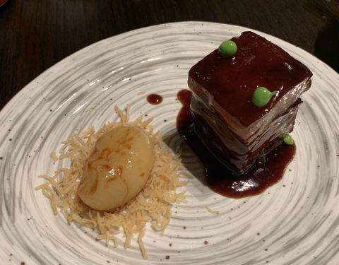 预订了套餐,结果没想到真的太好吃啦!强推,起码米其林二水平,直接可以上黑珍珠!先开始还担心会不会吃不饱然后回酒店房间再叫外卖,是我想多了,后面一道道地上来,吃得我快扶墙啦[6][6][6] [爱心]前菜四合一放一起,荤素搭配,去皮小番茄、醉鸡、叉烧还有素菜卷,一口一个回味无穷! [爱心]热汤是松茸黄耳野竹荪,素高汤,跟大蔬无界差不多哦,菌菇吊鲜,自然清口,带有一定的温度,暖心暖胃! [爱心]虾仁小豌豆 个头均匀,勾芡薄,豌豆水润带有甜度,一白一绿的搭配也勾人食欲! [爱心]干锅石斑鱼,肉蛮嫩的,无刺,煸香的洋葱丝很提香,粤式啫啫煲做法很心水! [爱心]一块有灵魂的红烧肉,盘子抖一抖,肉肉还能晃一晃,夹心五花肉选取的部位甚好,最后收汁佳所以皮上酱汁的光感度很赞,咬一口久违吃肉满足的感觉,不会过分甜腻,边上的糖心鹌鹑蛋似配角 但吃后有惊艳感,绝不简单! [爱心]黄鱼煨面,秒杀外面多家黄鱼面专门店,鱼汤做底,白而浓稠,鱼肉片儿还在上面,看得出吃得到的良心品质,一点点白胡椒提香,面条吸附汤汁,一碗下肚差不多八成饱! [爱心]不得不提五粮液玉液嫩豆苗,豆苗估计一斤里面只摘取最鲜嫩的部位,配合五粮液的加持,酒精在温度作用下已经挥发殆尽,留下的只有酒香,嫩度 [爱心]甜品是新鲜水果 甜!蛋挞也不错吃,酥皮很香!最后一碗杨枝甘露收尾,️足[机智] 也是一家必须二刷的中餐厅!大厨配菜我很放心!