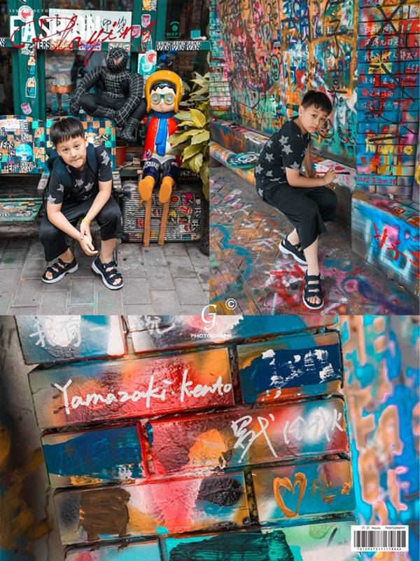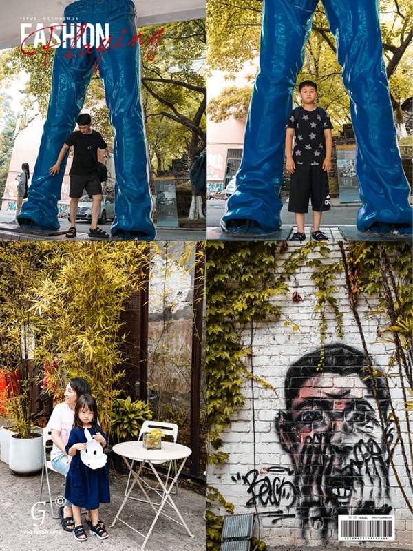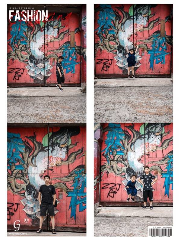 这个地方因为全是五颜六色的涂鸦,建议以黑、白灰为主要服装颜色,否则很难把人物跳脱出来。