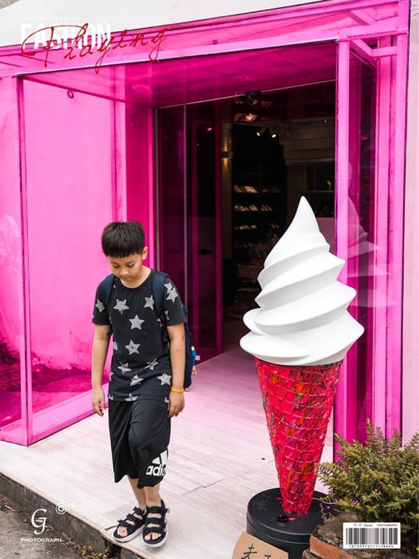 延着这马赛克建筑往下走(就是看到商业街的那个方向)看到左边有一条波浪型的路,走过去就是马赛克七彩池了,我们去的那天没几个人,所以拍照凹造型也是很随意的