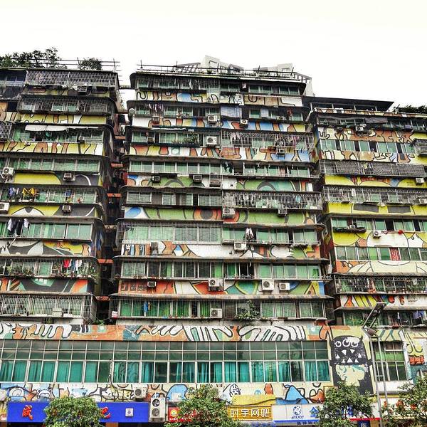轻轨2号线在杨家坪下车,后转乘公交或乘坐出租车(起步价)前往,在涂鸦一条街的位置下车,然后沿街步行抵达。一路上都是各种涂鸦墙 怎么拍都好看(大笑小蜂)