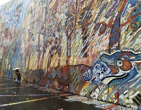 当我们看到四川美术学院美术馆的外墙时我们被震撼得目瞪口呆,第一感觉是画得多好啊!我们走到墙边观赏着抚摸着这个色彩斑斓的墙面,才发现这些光彩照人的彩绘是由无数片彩色马赛克碎片组合而成的,而查资料得知...