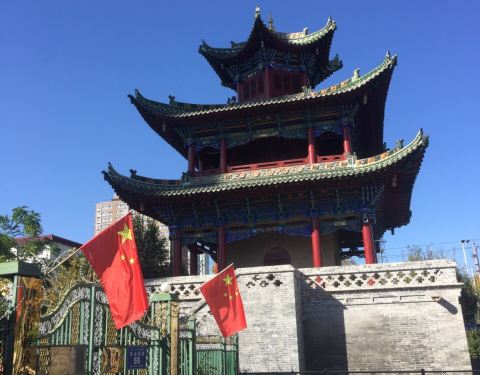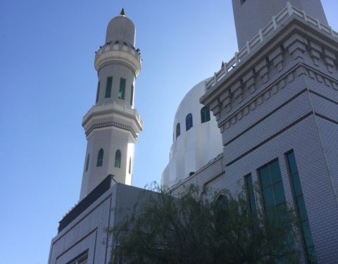 ...,只留下一座汉式邦克楼,主体建筑为近年重建的白色大理石罩面的阿式建筑,外观很壮观,可惜谢绝参观