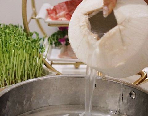 进店就是浓浓的椰奶香,椰奶锅真的巨好吃!但我这次前来是为了他们的新品菠霸锅!能想到将菠萝蜜加入火锅煮海南文昌鸡,除了23度真的没谁了。 加了一整只椰青的椰汁和一整盘马蹄到锅里一起煮,小漏斗倒计时到就可...