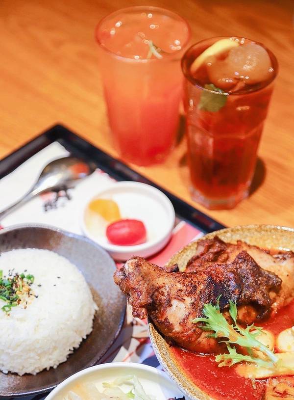 咖喱汤淘饭也很好吃。都很好吃,鸡肉很嫩。 马萨拉慢煎鸡腿超级大的鸡腿,已经被煮得很酥啦