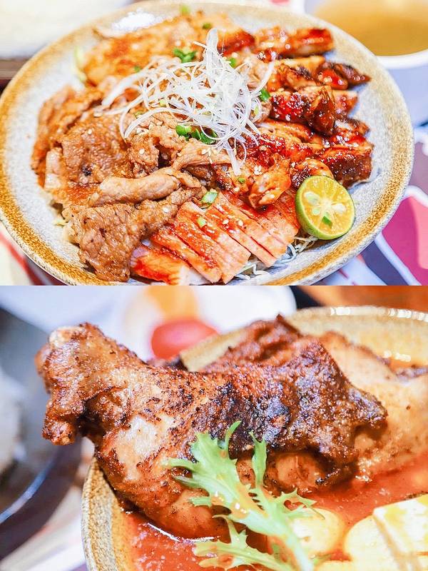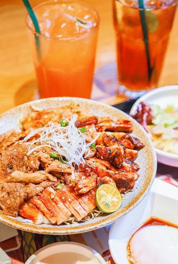 想吃肉 就要大口大口吃 这应该是最适合一人食、工作餐的小店 20+一份套餐就能吃上一大碗 而且还饭上满满都是肉还有汤和沙拉 营养丰富 满丼大剧场✨&赤焰烧鸟丼✨ 每种饭感觉就是肉的种类不一样 把一个无菌半生蛋放上去 戳破蛋黄的金灿灿真的太治愈也太搭了❗️挤点柠檬汁更清口清爽了 每口肉都是满足 一份饭的量太大了 根本吃不完 吃完肉都一大半饱了呢。