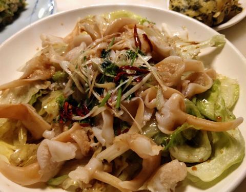 著名的海肠饺子,赞,韭菜混合海肠,口感上海肠的脆和韭菜清香融合于一体,该这家生意好。其他假鲍鱼、蟹钳、虾饼、葱油海兔每一道菜在我这个四川人嘴里都觉得他们口味不错,不得不说这家是做的非常好的一家小海鲜集合好饺子的店。