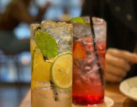 桃子柠檬气泡水,杂莓特饮,日式红豆年糕汤都是推荐的。 走到店里看看,结果非常幸运地没有排队