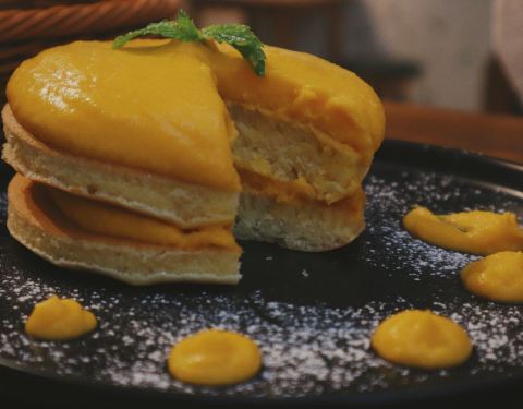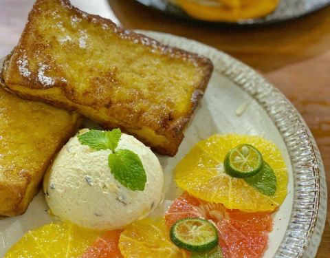 水波蛋三文鱼松饼 第一次点咸口的,比百香果那款惊艳,三文鱼搭配饱满牛油果酱夹在里面,鱼肉新鲜,融合度也挺高的,水波蛋弹弹的… 橙子西柚金桔百香果吐司 比想象中惊艳到我了,蜂蜜吐司烤的香甜可口,百香果奶油冰凉细腻清爽。 南瓜松饼 南瓜这东西还是冰凉的好吃,南瓜料足,但没有前两个打动我吧~