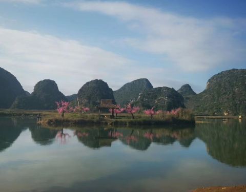 强烈推荐大家去那里看看,风景真的太美了。第一次体验到了喀斯特地貌风景,在湖水上,特别地静谧